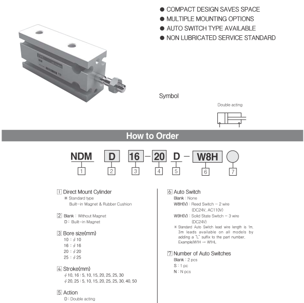 Xi lanh khí TPC : NDMDKW16- 25D – 8WHLS